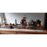 ° altes unbehandeltes Holzbrett , 1,30 cm x 23 cm, mit 3 Glaskugeln, welche mit Pflanzen, Kaktus, Kerzen ecc, je nach …