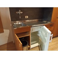 Kühlschrank, Waschbecken, Dunstabzug und Müllsystem.