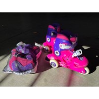 Verkaufe größenverstellbare Inline Skate für Kids, Größe 26-28, mit Schutz (Knie, Ellenbogen, Handgelenke). Selbstabho …